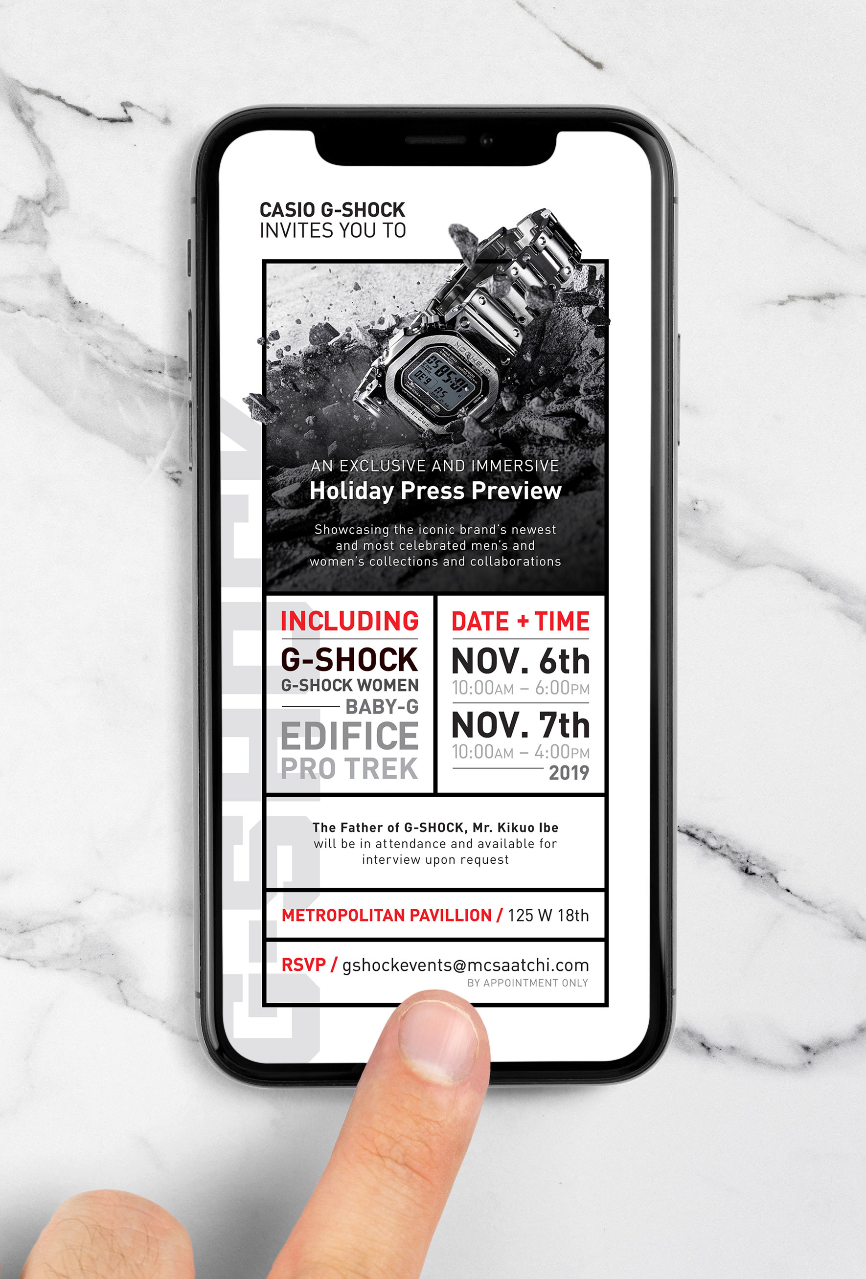 Digital invitations for CASIO branded shows, media previews, and other exclusive events
