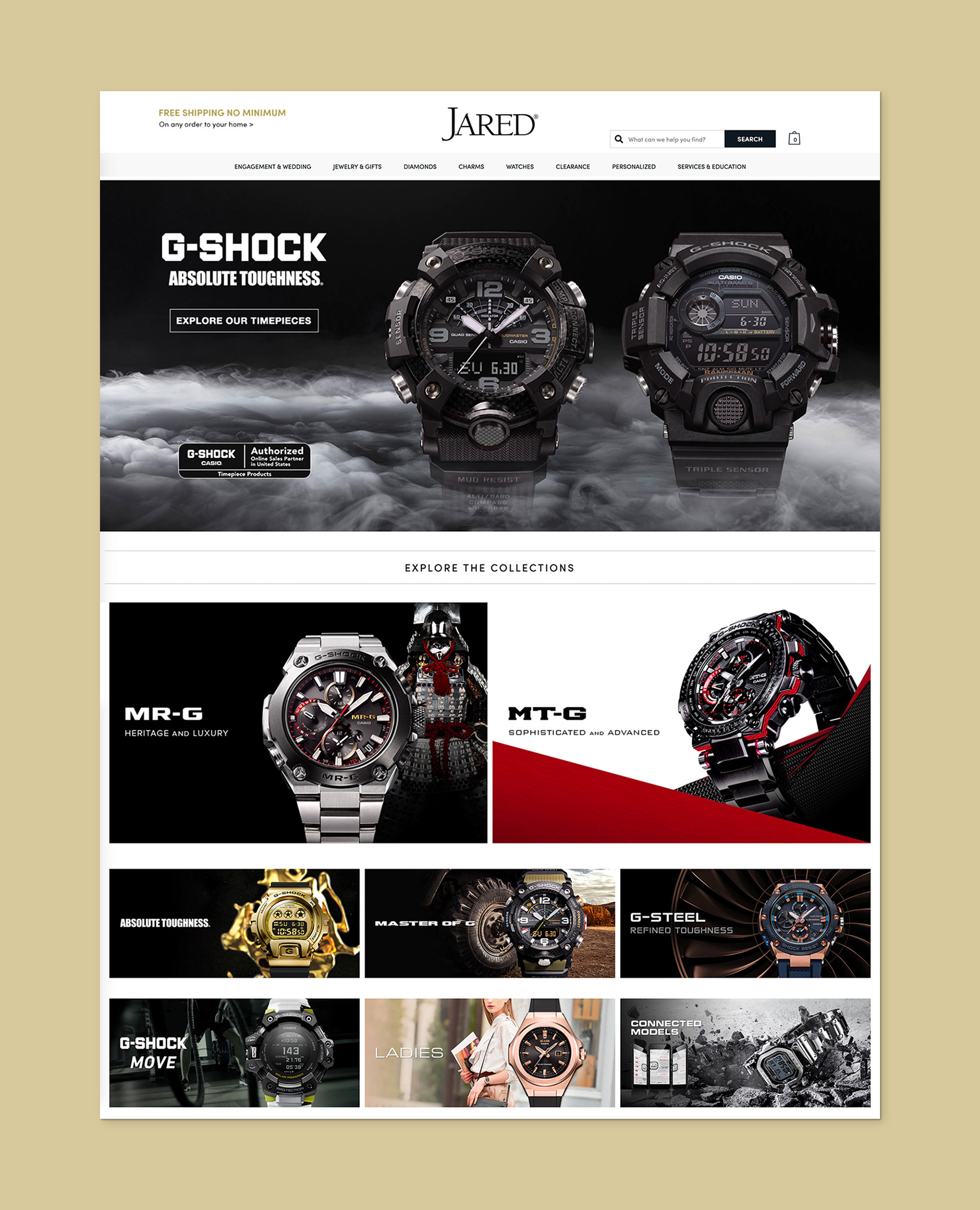 Web banner creative for dedicated G-SHOCK brand page on Jared.com
