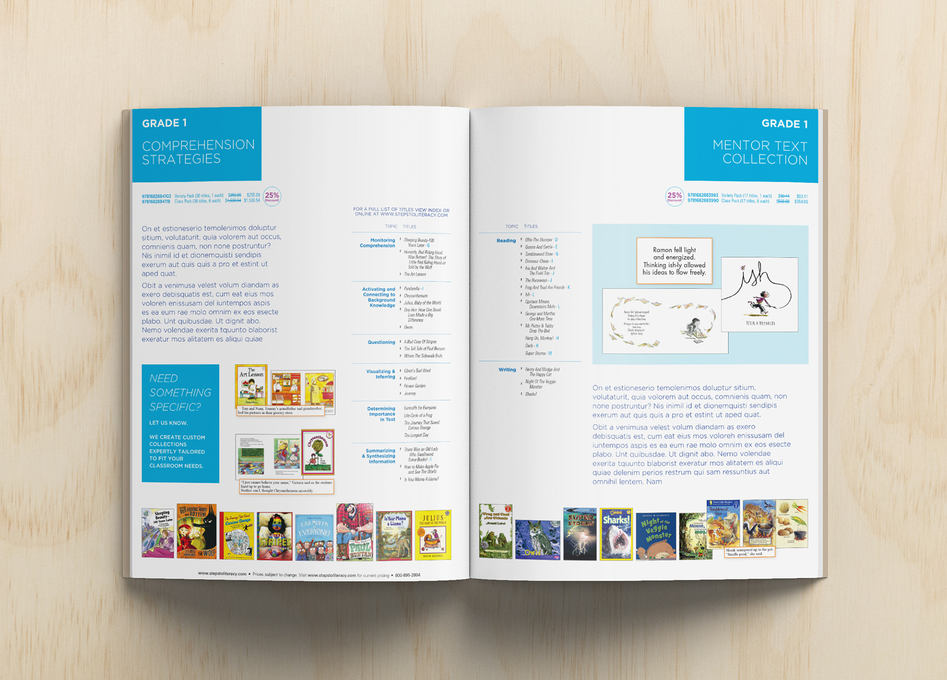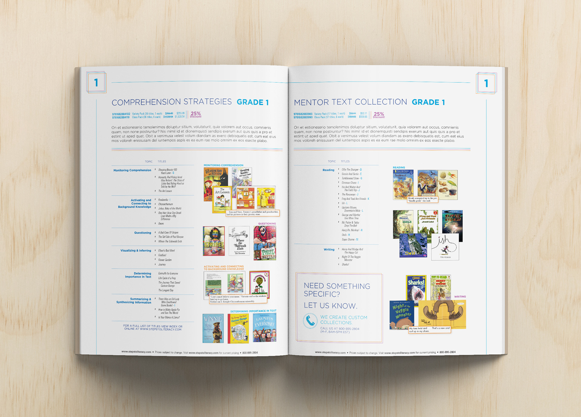 Product catalog for educators and school administrators featuring book collections designed for different reading comprehension levels
